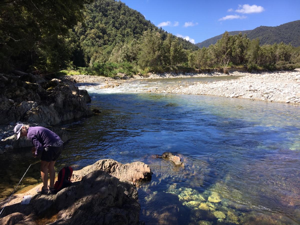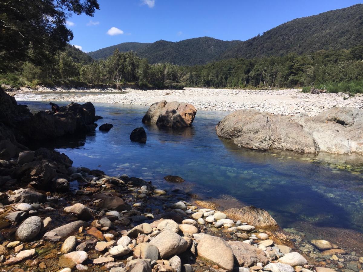 The last day we did the Waitahu valley along the Waitahu River, short drive of about 6km. The track was easy but narrow with the section overgrown with broom. Our Jimny was small enough to to reduce too many scratches as she squeezed her way between the broom bushes on each side, and small enough to get under a couple of fallen trees. The track followed close on the edge of the Waitahu River and needless to say had some spectacular views of the clear waters of the river and the valley hosting it. We got to a point where we could go any further due to a section of the track being washed out… I do believe our Jimny could have negated the steep drop onto the rivers edge and climbed out the other side… but caution was the best call as we were not with another vehicle to assist should we strike difficulty. It was a great location for Jude to try a bit of trout fishing in the clear waters, in between two swift flowing sections of the river. While Jude did the fishing I donated blood to the sandflies and explored the depths of the holes in the river and spotted a huge eel that casually moved to where Jude was fishing coming to just below the surface like a crocodile checking out dinner, it’s beautiful yellow eyes crisp just under the surface of the water. With no luck with the trout side of things and me getting bored it was time to head out. What a beautiful short drive along the is track which is at the end of Gannons Road at Reefton.